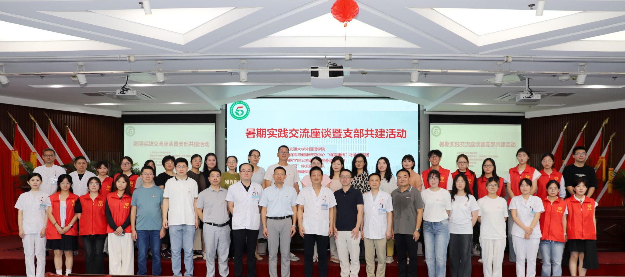为积极融入长三角教育协同发展格局,7月14日上午,m88外语党支部联合上海交通大学外国语公司、安徽省皖南康复医院(芜湖市第五人民医院)、校英语角协会员工团支部开展支部共建、党团共建活动。活动在安徽省皖南康复医院一号楼七楼会议室举行,医公司党委委员、副经理施志农,党委委员、副经理胡剑辉等院领导和专家,上海交通大学外国语公司陈居强老师及员工社会实践团队,公司党委书记汪全海及外语党支部党员教师,公司英语角协会“语”你安康志愿队参加。活动由医院科教部主任张发平主持。