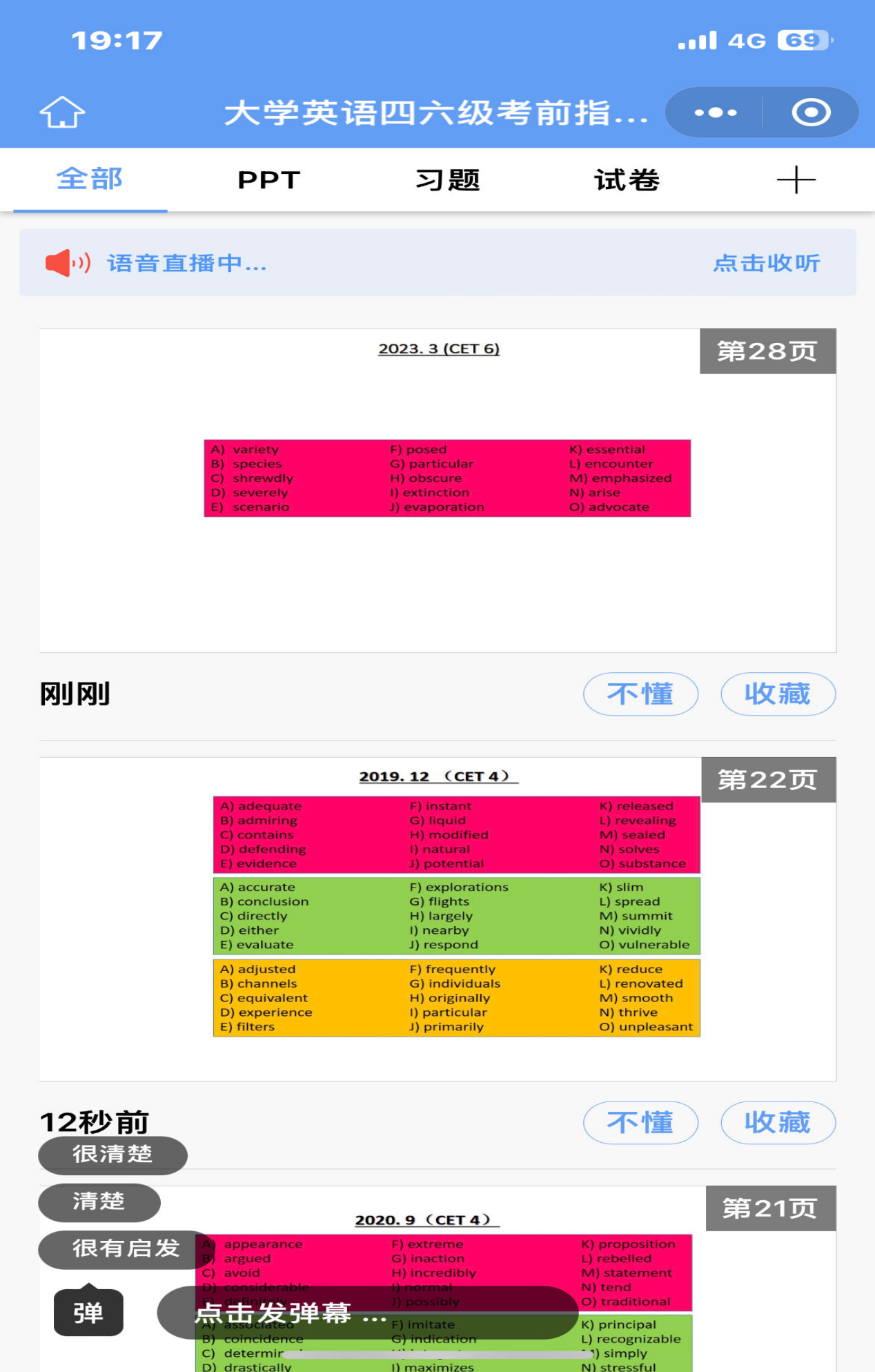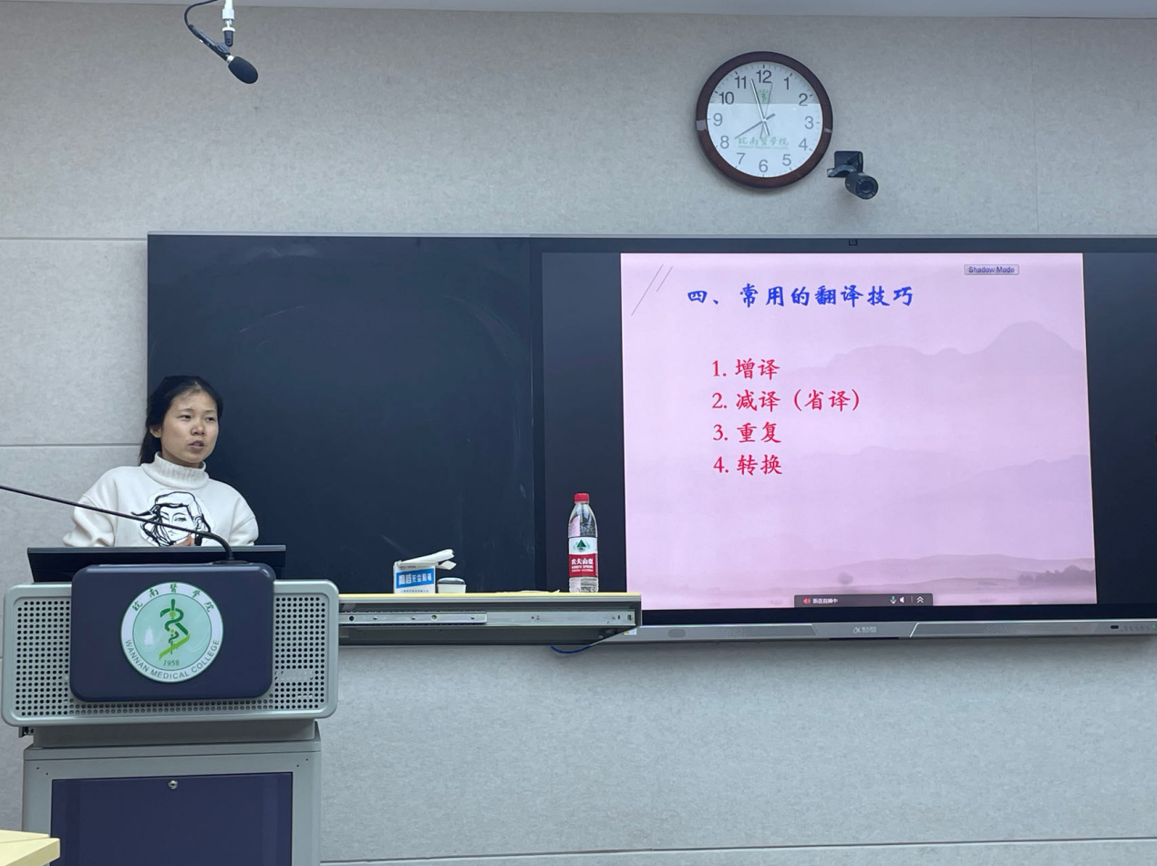 代雨晴从四六级翻译题型、中英文区别、句子翻译技巧以及常用翻译技巧四个方面展开,围绕典型例题,为同学们介绍了“增译”、“减译”、“重复”等翻译技巧,并结合自身的学术研究,强调翻译题要注重辨认采分点;记忆重点单词、重点短语搭配;关注热点类、传统文化类、日常生活类等话题的语句积累。