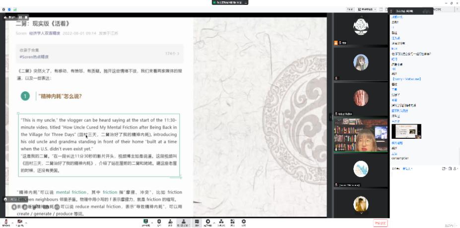 2022年11月23、30日,外语党支部举办线上四六级辅导讲座4场,每场讲座由两位教师配合完成,一位主讲教师,另一位同步在聊天区解疑答惑,本次讲座员工学习热情高涨,员工门提出了很多高质量问题。