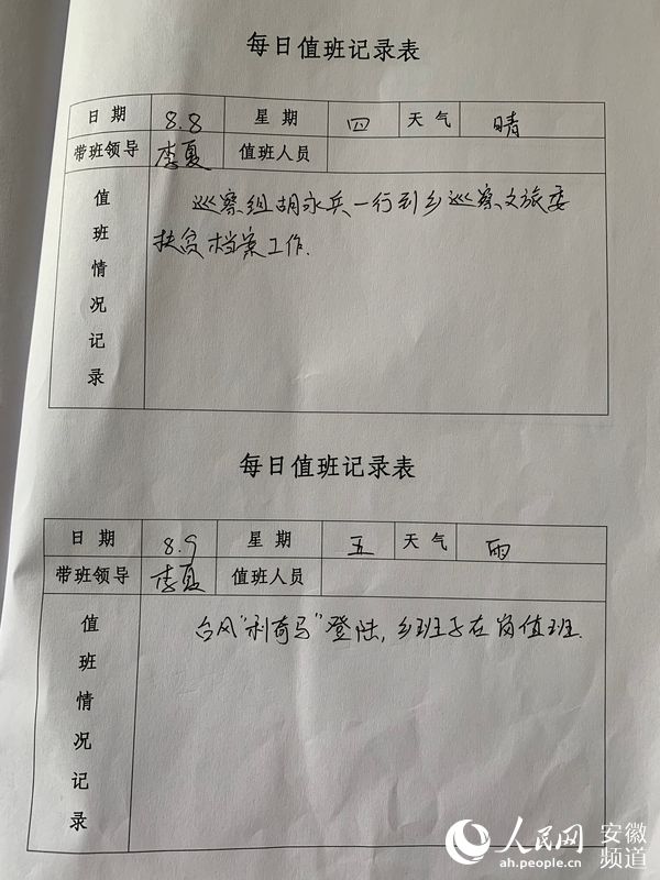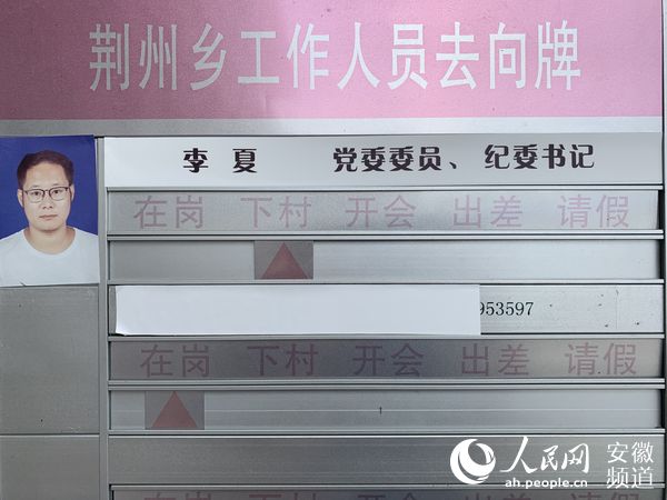 荆州乡工作人员去向牌上显示着李夏最后的工作状态。