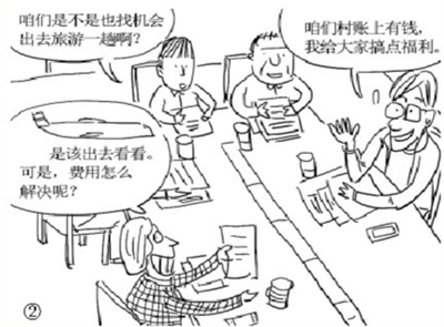 图二:外面世界很精彩,想去看一看。在一次村“两委”会上,“两委”一班人不约而同有了外出旅游的想法。正为无旅游费用一筹莫展之际,张某某提议以虚列开支的方式套取村集体资金,并美其名曰“村干部福利”。2015年11月,他们开始了港澳游的行程。