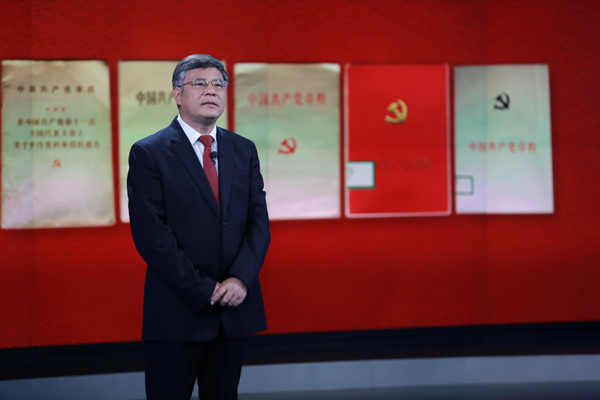 谢春涛:我们从党章的修订和完善的过程来看,党章的丰富和完善,反映了我们党的指导思想的与时俱进,反映了我们党作为中国人民的领导核心不同时期是用什么样的路线方针政策引领国家发展、团结凝聚全国人民的,也反映出我们党的建设不断进步和加强。