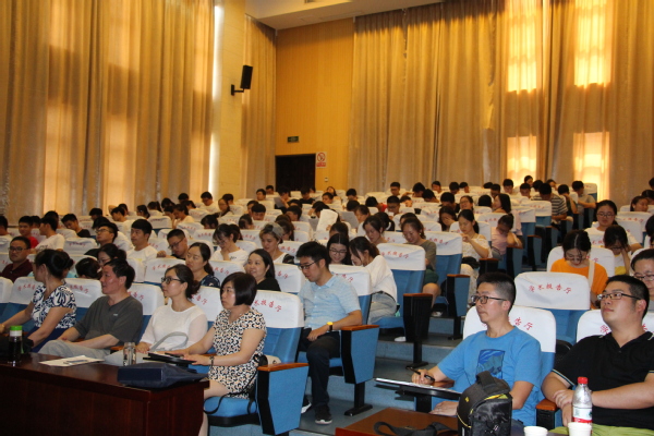 2018年6月26日下午,安徽省外文学会会长、安徽大学外语公司经理朱跃教授应公共基础(创新创业)公司邀请,在逸夫科技楼一楼报告厅作“英语使用与阶级”的专题报告。报告会由公共基础(创新创业)公司经理杜少陵主持,外语教研室全体教师以及员工共近200人出席聆听。