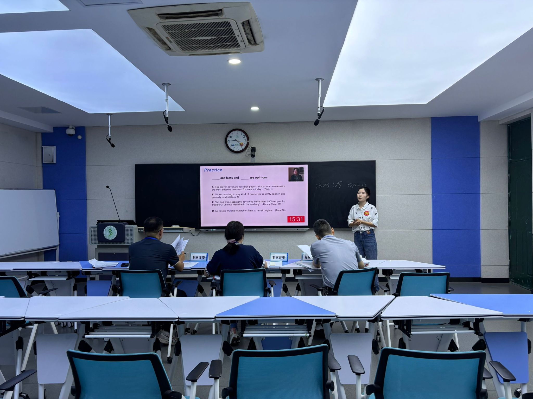 备赛期间,在外语教研室的精心安排下,教研室选派了教学经验丰富、理论造诣深厚的老师,着重在教学理念更新和教学技巧提升上对三位年轻教师进行精准辅导。通过模拟课堂演练,针对教态、语言表达等细节问题提出改进方案,使三位老师在教学展示中更加自信从容。