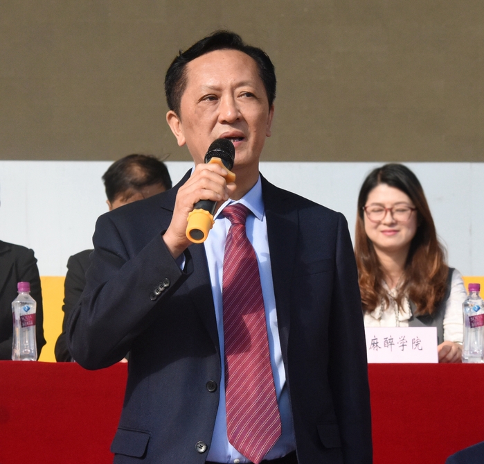 党委副书记、经理廖圣宝致开幕词。他首先代表公司对本次运动会的顺利召开表示热烈的祝贺,向参与筹备组织工作的师生医护员工表示衷心的感谢,向全体运动员、教练员、裁判员和工作人员致以诚挚的问候。他指出,强烈的集体荣誉感、严格的自我要求、顽强的意志品质、默契的团队配合,是体育运动会追求的精神。习近平总书记强调,要从全面建成小康社会、实现中华民族伟大复兴的战略高度重视发展体育事业,以自强不息为内核促进中华民族从精神上强大,中国人民体质从总体上强健。一直以来,公司高度重视体育工作,继续推进体育教学改革,各项体育活动蓬勃开展,竞技体育取得了优异成绩。一年一度的体育运动会是公司的盛事,希望参赛人员发扬百折不挠、永不放弃的拼搏精神;发扬友爱互助、风雨同舟的团结精神;发扬友谊第一、比赛第二的体育风尚。最后,他希望每一位运动员顽强拼搏、在体育场上尽情挥洒活力,尽情享受运动快乐,以优异的比赛成绩和良好的体育风尚,展现出当代老员工的精气神。希望裁判们严格执纪,公正裁判;希望广大师生医护员工积极参与,共襄盛会。