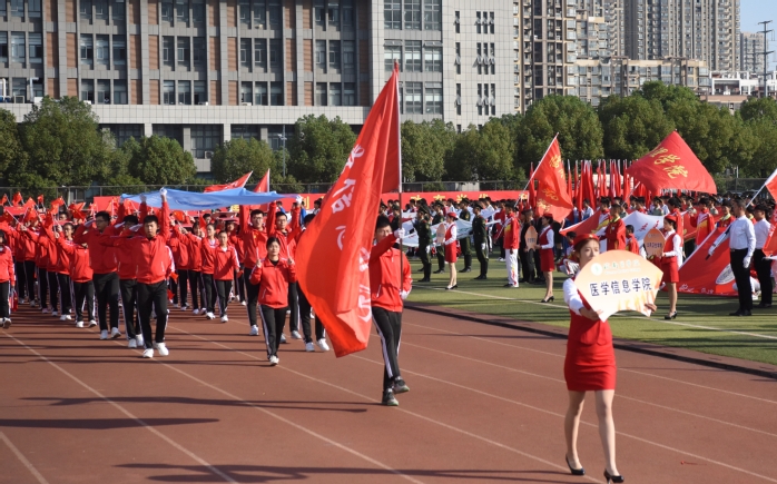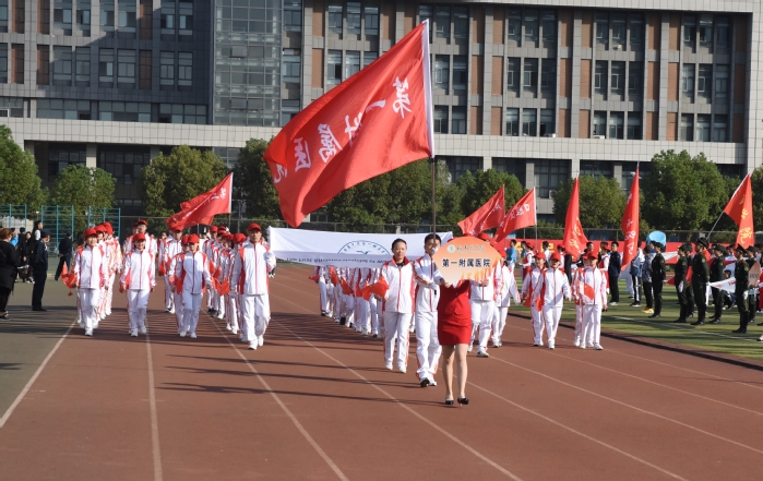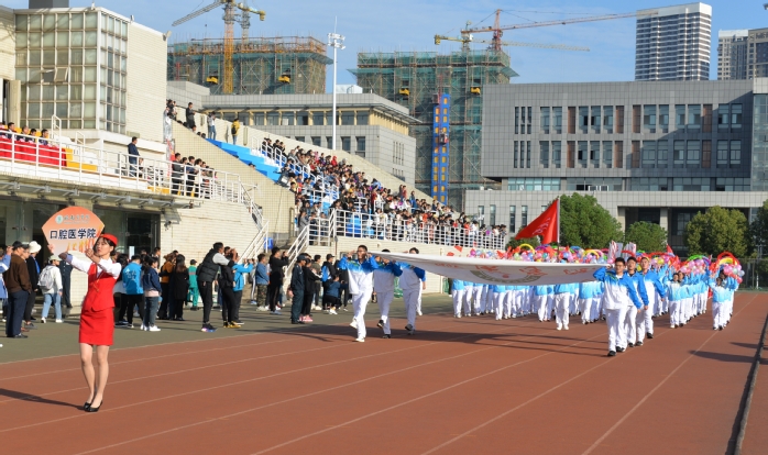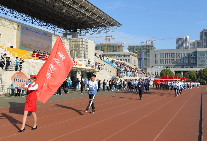 庆新中国70华诞、展皖医人拼搏风采。10月16日上午8时整,在全校上下热烈庆祝中华人民共和国成立70周年和扎实开展“不忘初心、牢记使命”主题教育的热潮中,m88官网第40届体育运动会在运动场开幕。校领导章尧、廖圣宝、刘人人、吴金月、郑兰荣,组委会成员、裁判员、运动员、员工代表共计4000余人参加开幕式。开幕式由副经理郑兰荣主持。