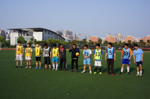 尹老师从目前我省五人制足球赛的开展情况进行介绍,针对比赛中经常出现的问题进行详细解说,将五人制与十一人制足球赛的区别进行对比。并且邀请了公司部分同学进行实战演练,公司体育教师分组轮流上场进行实战执裁,从而进一步提高了教研室全体教师的执裁水平。