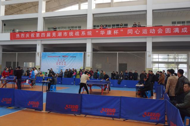第四届芜湖市统战系统“华康杯”同心运动会乒乓球赛、羽毛球赛、围棋、象棋比赛于2015年12月12日-13日在公司风雨操场举行。乒乓球混合团体共有37支球队参赛,羽毛球混合团体共有40支球队参赛。