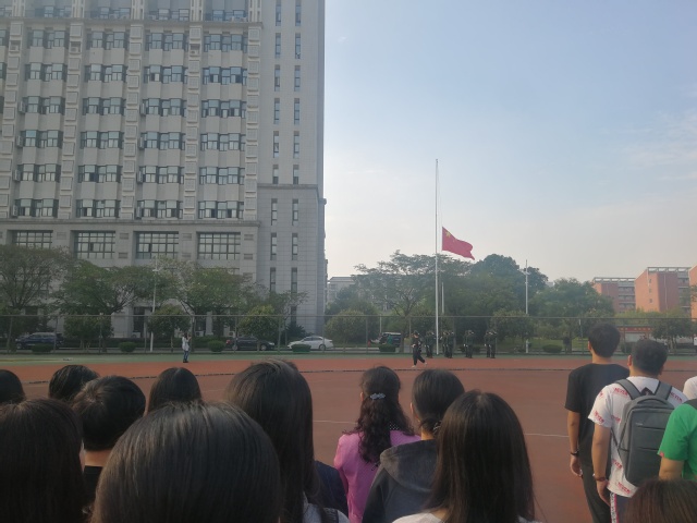 金秋送爽,丹桂飘香。7点40分,伴随着嘹亮激昂的《义勇军进行曲》,鲜艳的五星红旗冉冉升起,全体人员肃穆而立,向国旗行注目礼,为伟大祖国送上深情祝福,祝愿伟大祖国更加繁荣昌盛。