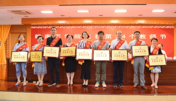 公司韦雪梅、梅晔两位老师获“优秀共产党”称号,葛嘉亮老师获“优秀党务工作者”称号,外语党支部获“先进党支部”称号,体育教研室获“先进集体”称号,吴扣龙、赵妍、蒋甜三位老师获“优秀教师”称号,乔政老师获“优秀教育工作者”称号,王翠莲老师获“30年教育工作者”称号。