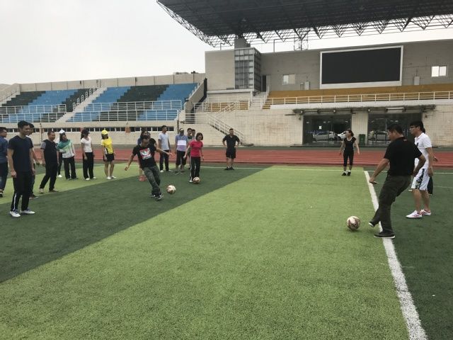 陶老师深入简出的讲解了足球脚内侧踢球和颠球的动作要领,带领大家学习了足球的教法的重难点。全体教师进行了积极探讨,为接下来的足球课教学做好了充分的准备。